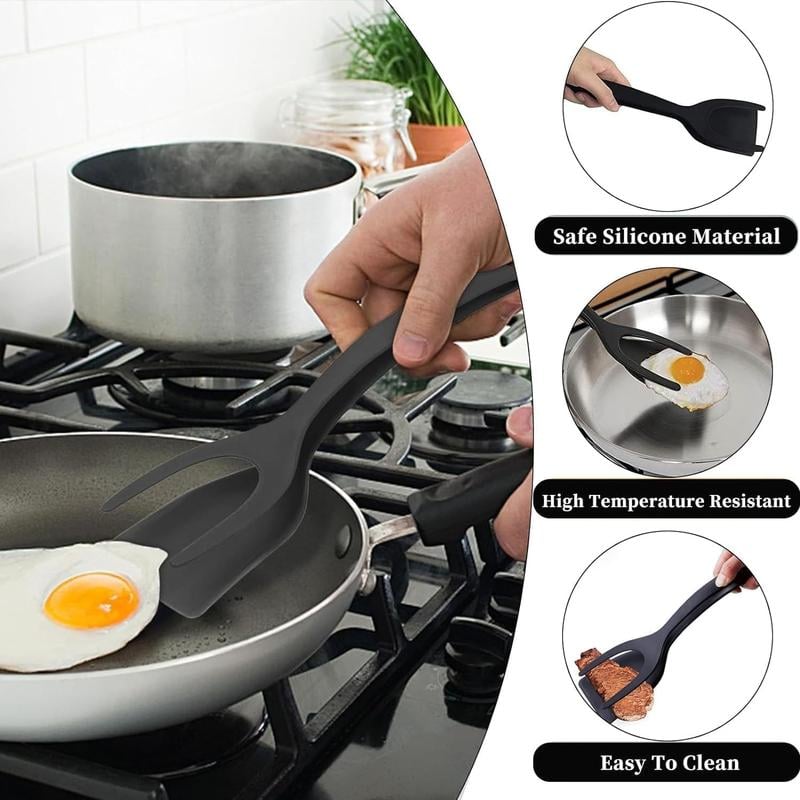 This clever 2 in 1 tool flips like a spatula and grips like tongs, so eggs slide out clean, pancakes turn in one go, and steaks land right where you want them. Food grade nylon is gentle on nonstick pans, heat resistant, and a breeze to wash. One tool. Less mess. Faster plates. 🙌