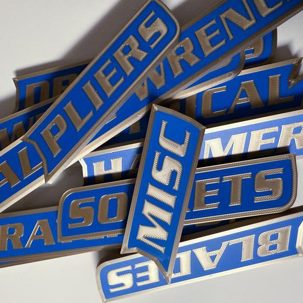 Bring order and personality to your workspace with ColKy Designs Custom Magnetic Tool Labels. Designed for toolboxes, carts, drawers, and cabinets, these magnetic labels make it easy to identify your tools at a glance — no more wasted time searching!