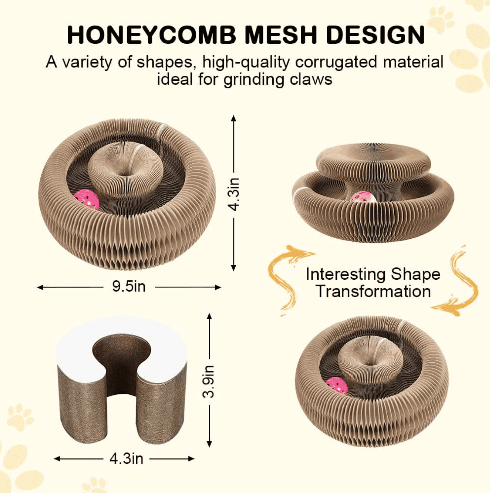 Our magic foldable scratcher provides endless fun with a ball track and scratching surfaces. Perfect for kittens and adult cats who need mental and physical stimulation.