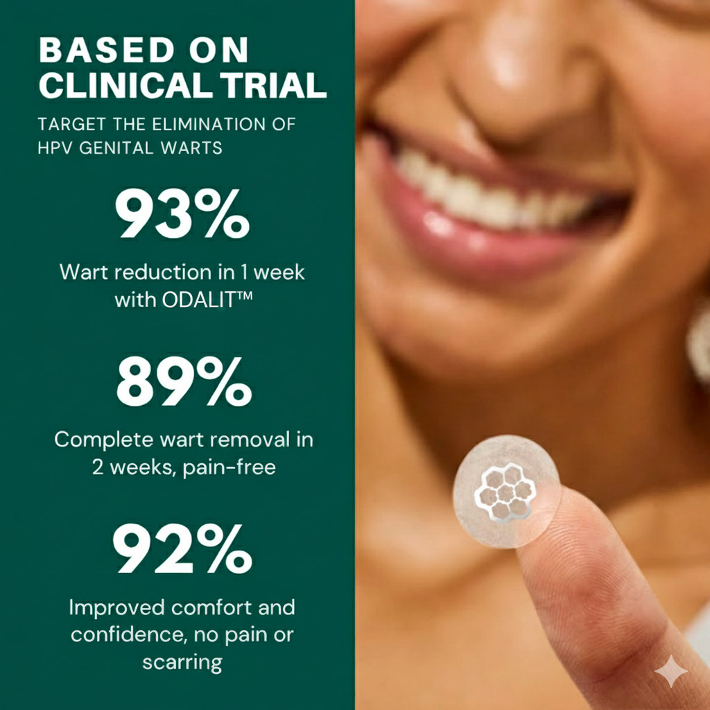 Visible wart reduction in the first week with ODALIT™'s microneedle technology, offering a pain-free, deep-penetrating solution.